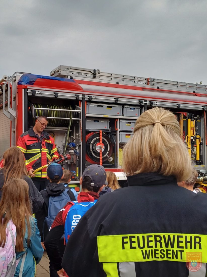 Am 24.07.2025 durfte die 3. Jahrgangsstufe einen spannenden Ausflug zur Freiwilligen Feuerwehr Wiesent machen! Mit leuchtenden Augen hörten die Kinder den Feuerwehrleuten zu, durften echte Ausrüstung ausprobieren und sogar das Feuerwehrauto ganz genau unter die Lupe nehmen. Ein echtes Highlight war natürlich die Fahrt mit dem Feuerwehrauto. Ein herzliches Dankeschön an die Feuerwehr Wiesent für diesen lehrreichen und aufregenden Vormittag – ihr seid echte Helden! |